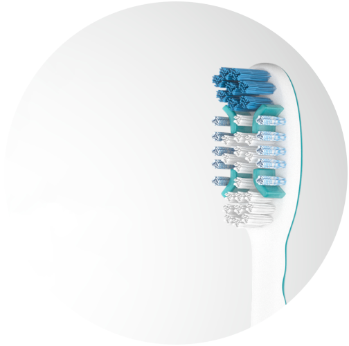 Behold ditt vinnende smil ved å beskytte tennene mot hull. Colgate® Cavity Protection tannbørsten fjerner plakk på en smart måte. Den hevede rengjøringstuppen gir bedre tilgang til bakre tenner, de koniske børstehårene er designet for å rengjøre områder i munnen som er vanskelig å nå og gummihårene rengjør tannflatene. Dette bidrar til å redusere karies.